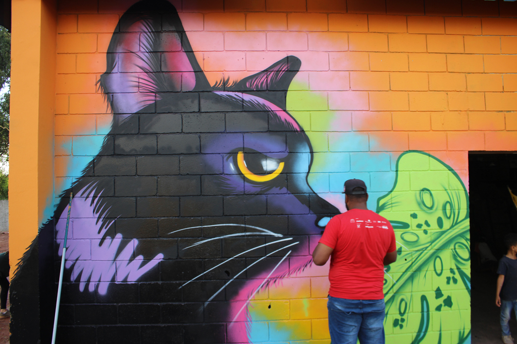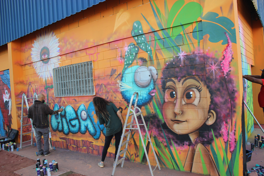 Pela arte, sensibilização, tecnologia e participação coletiva, artistas movimentaram suas mãos, corações e mentes e ressignificaram o galpão da Coopercata com lindos GRAFITES fazendo emergir uma nova alma, um novo espaço.